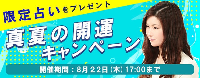 真木あかりの公式占いサイトでは、『真夏の開運キャンペーン』を開催中です。期間中、対象の鑑定を占っていただいた方には、期間限定の占いをプレゼントいたします。