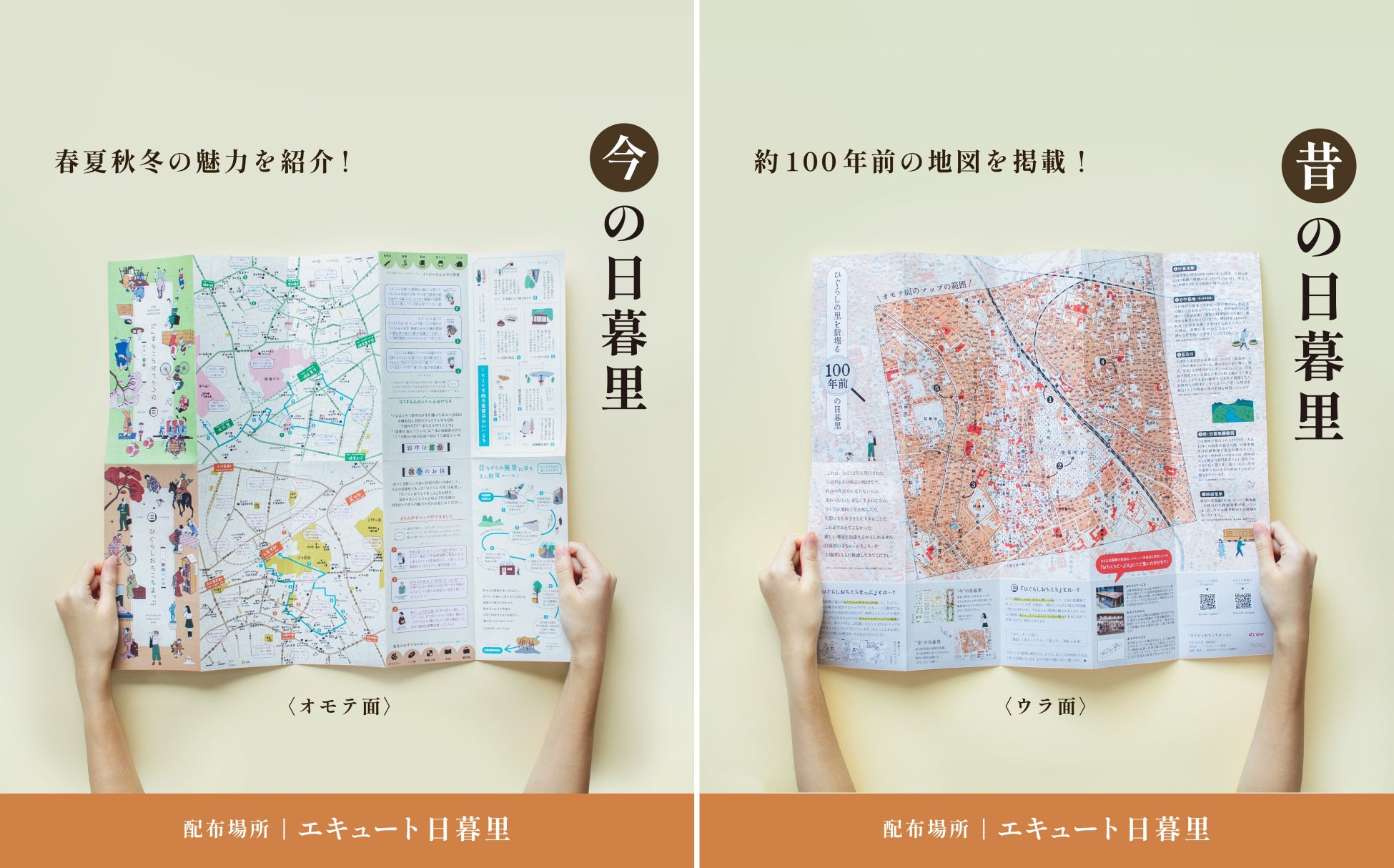 エキュート日暮里にて配布中!JR日暮里駅周辺で暮らす方のおすすめのお店や好きな場所などの「推しスポット」をMAPに落とし込み、季節に合わせた散策コースも記載。昔の日暮里(約100年前)と今の日暮里の春夏秋冬の魅力もギュッとまとめた、魅力満載の折り畳み式マップです。さくらのオススメスポットもチェックできるので、エキュートの商品を片手にまちへおでかけしませんか?