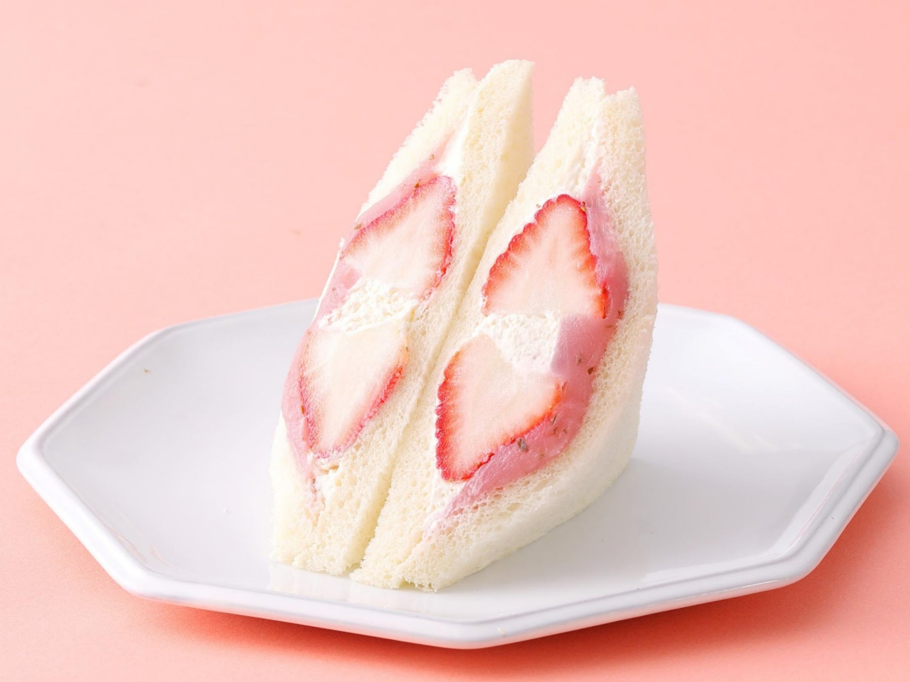 甘酸っぱい苺とメルヘン特製の生クリーム、そして優しい甘さのあるさくらあんを使ったスイーツサンドイッチです。