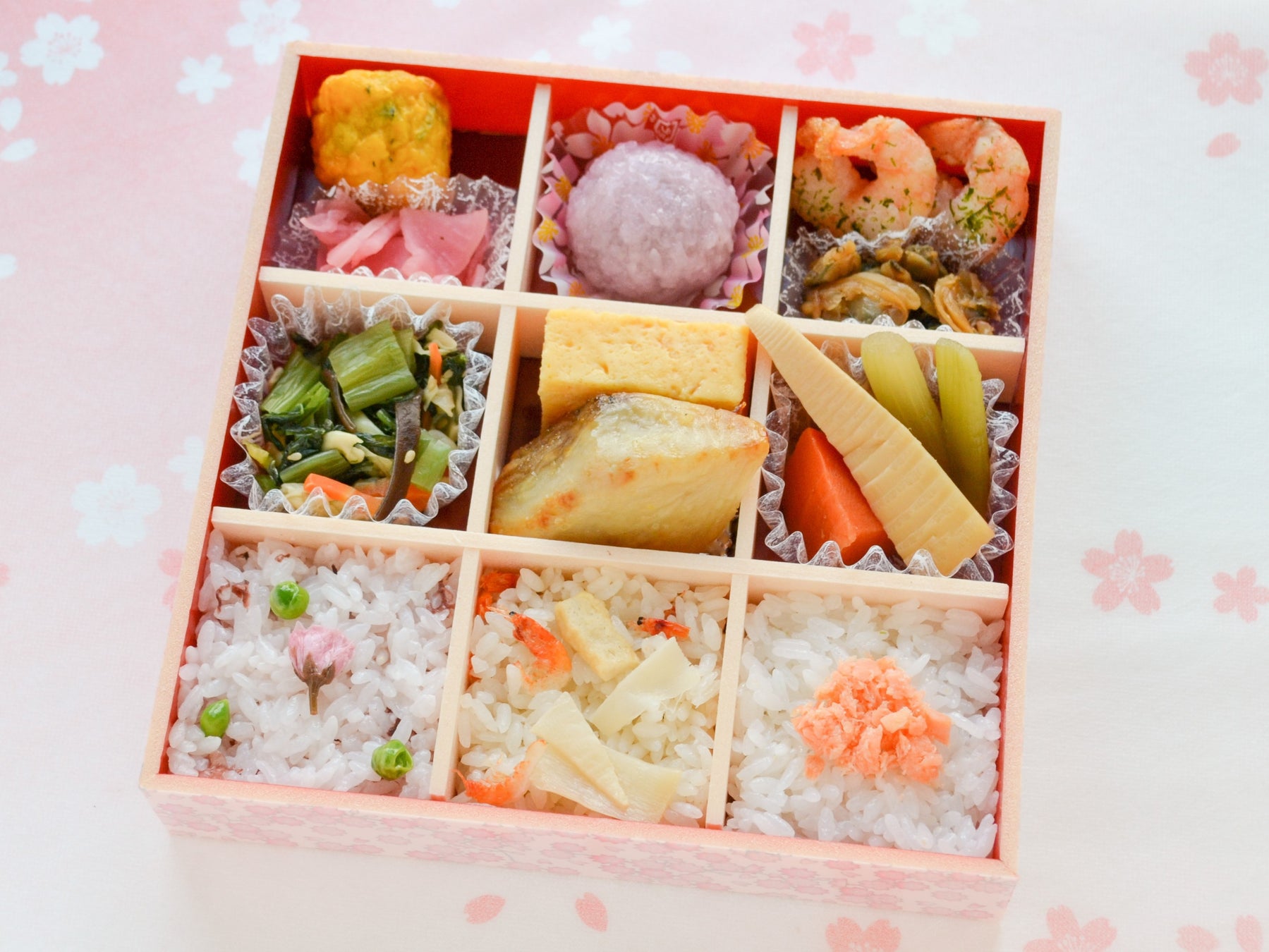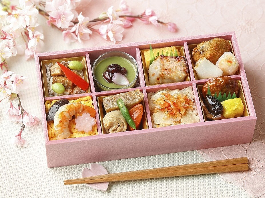 さくらの花びらを混ぜ合わせたご飯と桜えびの炊き込みご飯、白飯の3種類がお楽しみいただける季節感満載の一品です。お花見など行楽のお供にもおすすめです。