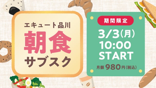 対象ショップで500円(税込)以下の商品を、月4回まで受け取ることができる『朝食サブスク』を開始します。4月からの新生活にあわせ、朝食はエキュート品川で!エキュート品川の個性豊かなデリ・ベーカリーショップからお楽しみいただけます。
