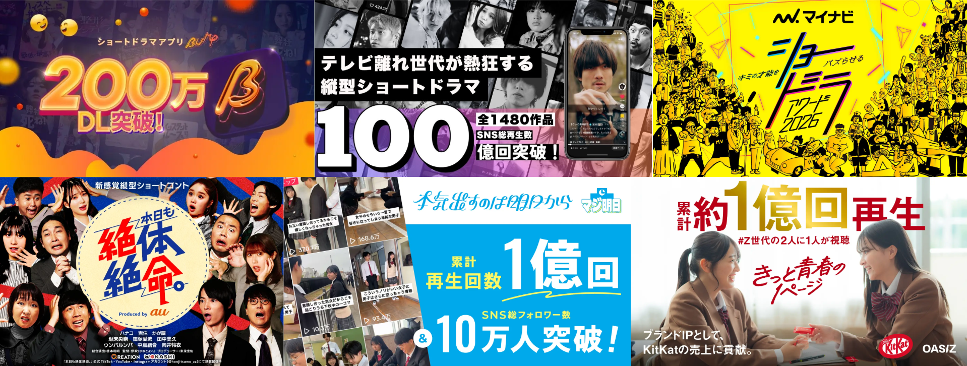 2025年のショートドラマ市場は、中国発の課金型ショートドラマアプリ(ReelShort, TopShortなど)に続き、韓国・米国にも進出する「BUMP」や、ごっこ倶楽部が運営する「POPCORN」が代表的存在に。また、TikTokやYouTubeショート,Instagramなどを中心に、「本日も絶体絶命。」(18億回再生突破)や「マジ明日」(4億回再生突破)などの大規模IPが登場し圧倒的なリーチを獲得しており、さらに企業活用事例も増加する傾向となりました。