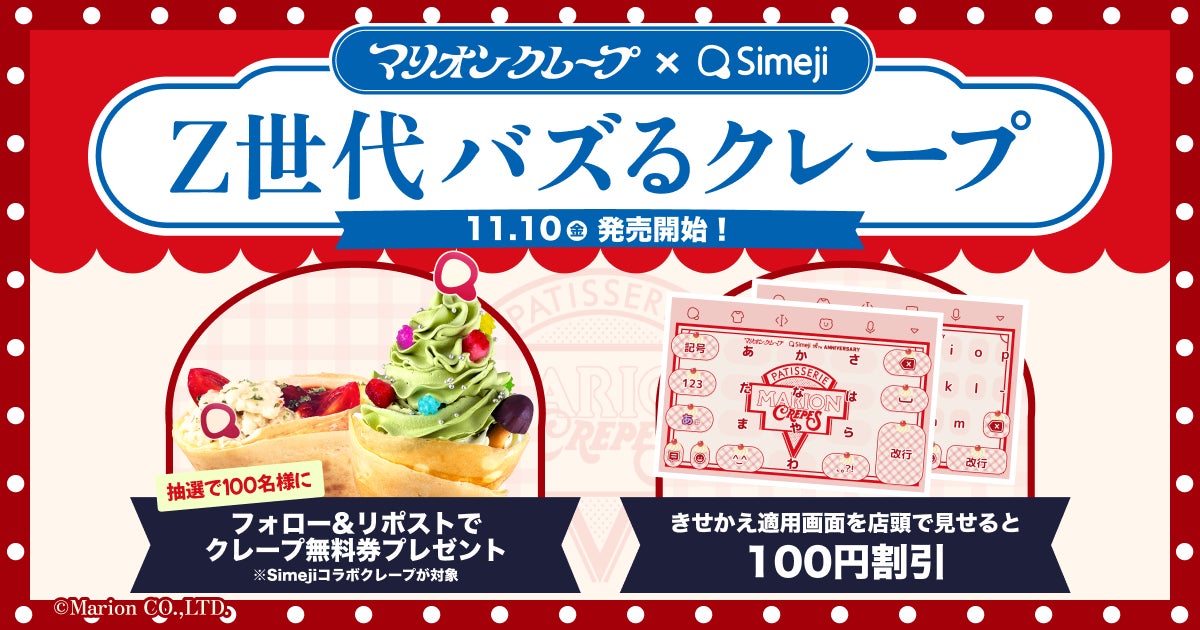 【Simeji 15周年記念】Simeji Lab第2弾!Z世代と考案したバズるクレープ2種を11月10日より販売開始。『マリオンクレープ』と初のコラボキャンペーンも実施!