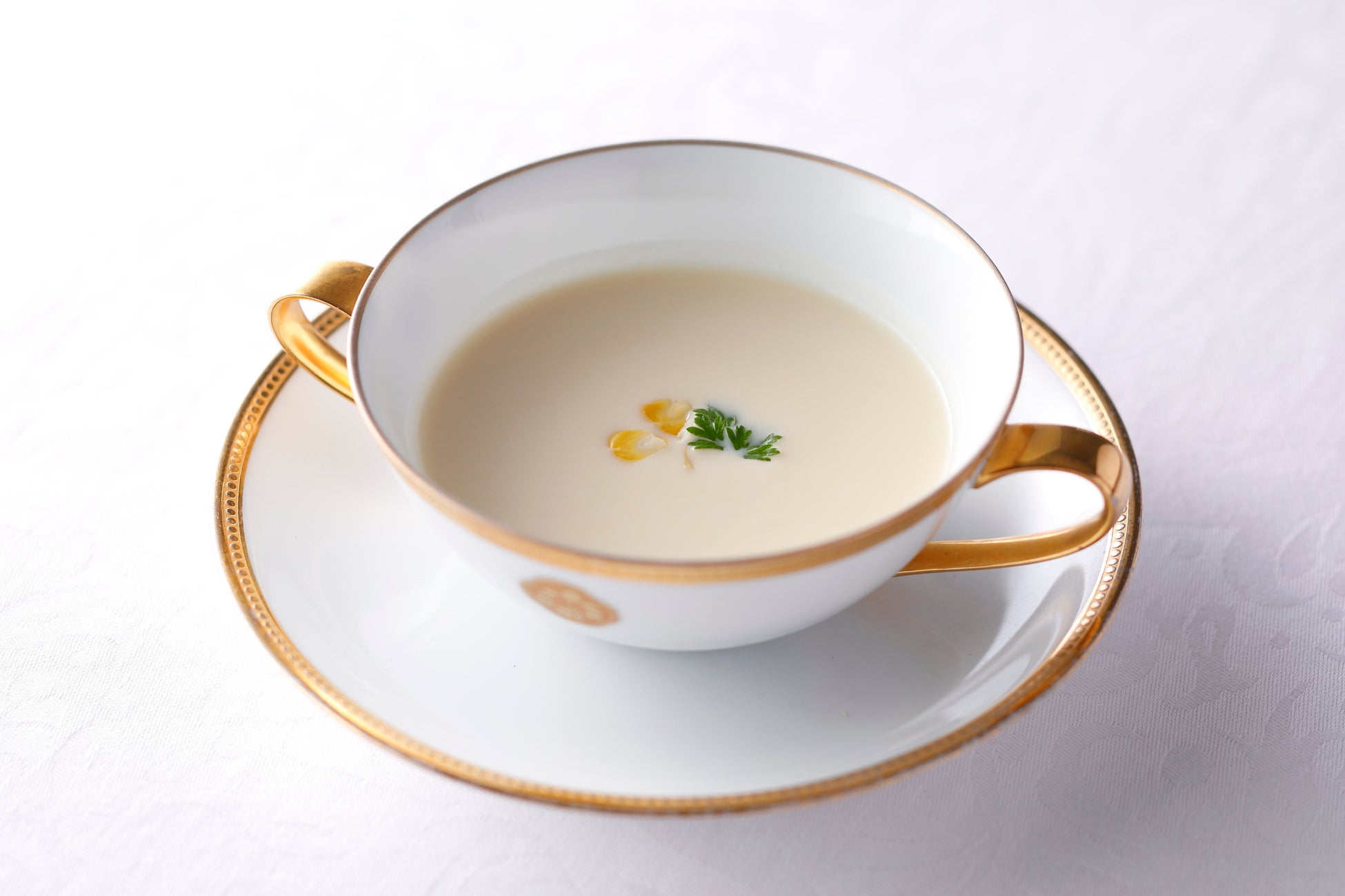 鹿児島県産ゴールドラッシュ 冷製トウモロコシのクリームスープ(写真下)