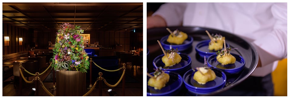 会場には、東 信氏がパーティーのために特別に制作した、ボトルにあしらわれた草花を再現したアートピースを展示。パーティーに訪れたゲストらは「グレンモーレンジィ 23年 by Azuma Makoto」を嗜みながら、様々な草花が織りなす神秘的な空間に酔いしれました。東 信氏は、「2018年の第1弾は、ビル博士が作ったものを作品で表現するというアプローチでしたが、今回の第2弾は初めて蒸留所を訪れ、ウイスキー作りの素材選びから、味わいも含めご一緒する機会に恵まれました。ハチの巣、土、苔、木の皮など自然そのものを素材として選びました。自由で好奇心に溢れたビル博士との協同作業は本当に愉しく、インスパイアされる時間でした。」とグレンモーレンジィ 最高蒸留・製造責任者 ビル・ラムズデン博士との制作秘話を明かし、会場を沸かせました。
