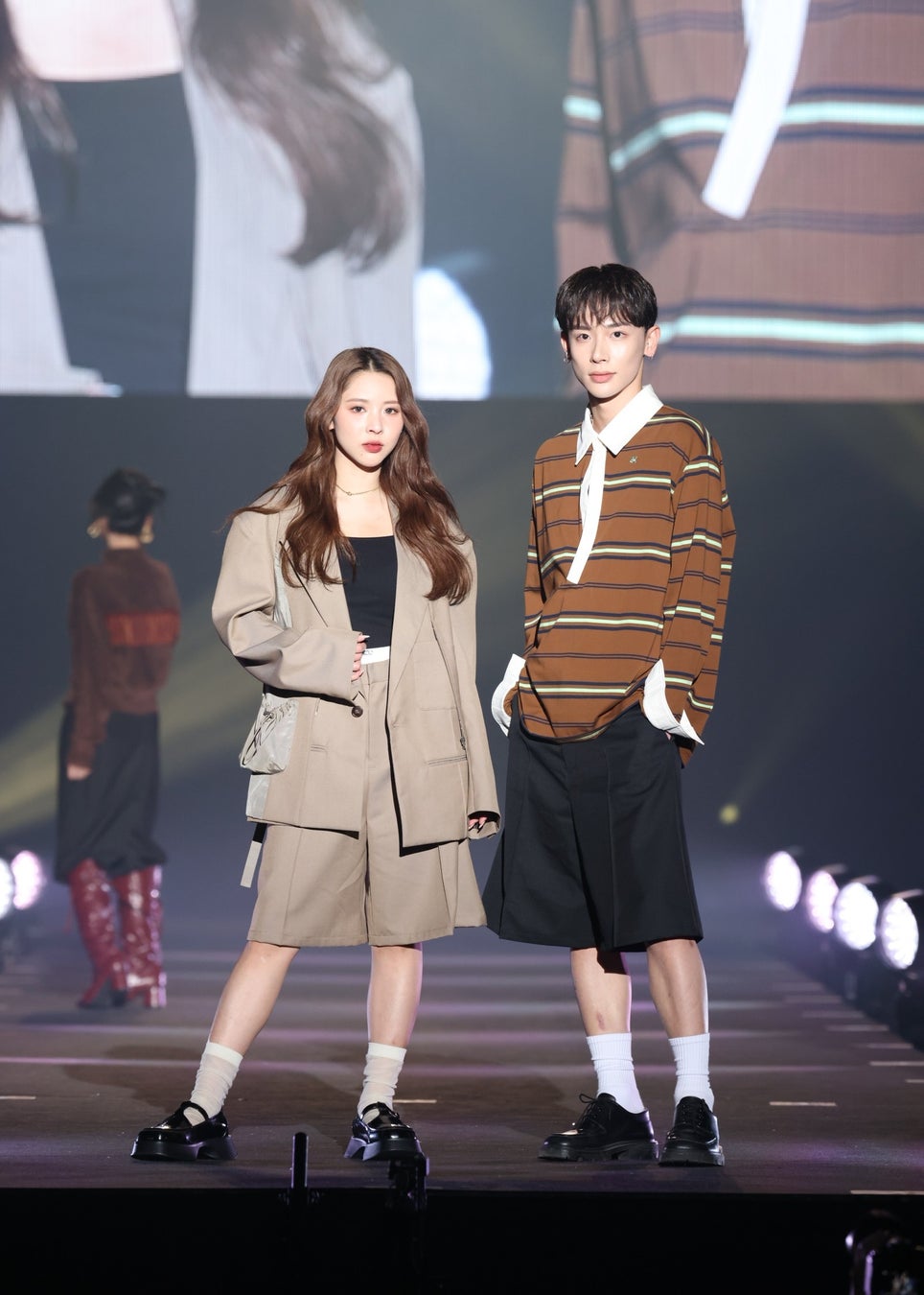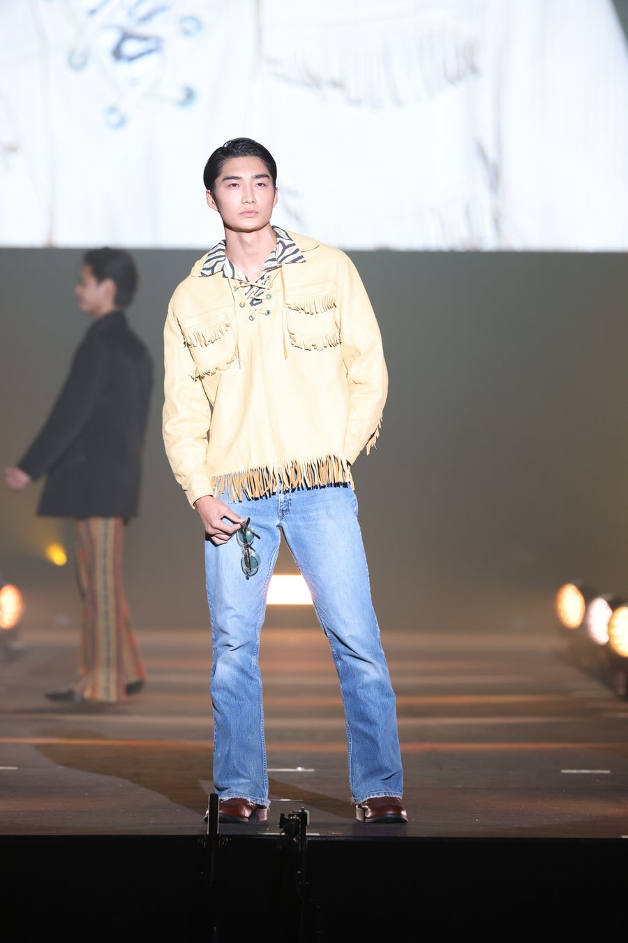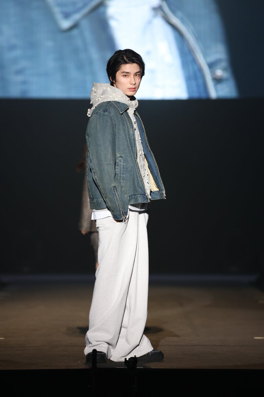 続けて、ファッショニスタたちからの熱い支持を獲得し続けている大人気ブランドSLY(スライ)のステージには、令和のトレンドセッターとうあが、グレーカラーのセットアップにキャップを合わせたノームコア風のコーディネートで登場。また、日本一とも称されるビジュアルが反響を呼んでいる本田響矢は、ジーンズジャケットにスウェットを合わせたアーバンスタイルで登場しました。