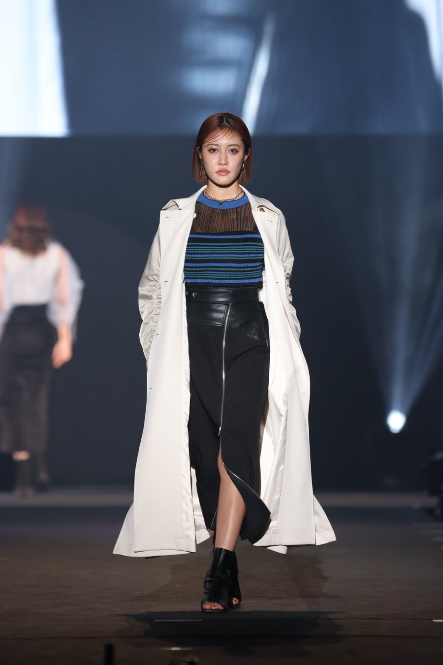 ファッショントレンドが日々変化する中で、「ものを捨てない」「ものを大切にする」こともSDGs達成に向けた重要なテーマとなっている中、今季のトレンドアイテムをはじめ、オールシーズン活用できるアイテムも取り入れたコーディネートで、買いすぎないスマートファッションを提案する「SEASONLESS FASHION STAGE」には、ブラックを基調としたクールなマスキュリンスタイルに、シルエット・カッティング・マテリアルで女性らしさをプラスした唯一無二のモードスタイル「FEMININE MODE」なアイテムを展開するMURUA(ムルーア)が登場!数々の話題作に出演する人気女優岡崎紗絵や、抜群のスタイルが“女神”と度々話題を呼んでいる王林らが登場!2025年春夏のトレンドでもあるシフォンやオーガンジー素材を取り入れた、春先取りのコーディネートを披露しました。