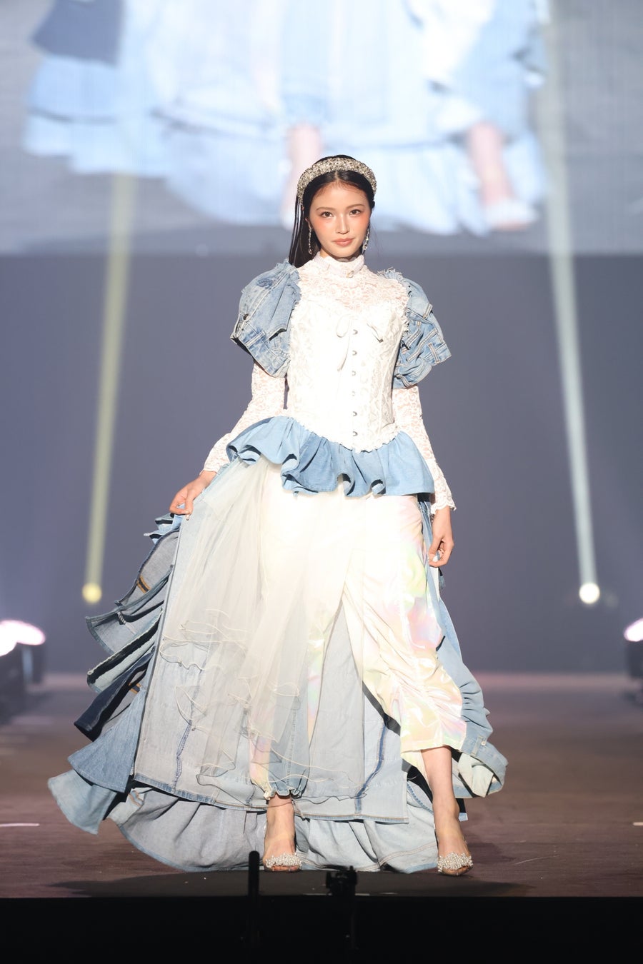 文化服装学院在学中のデザイナーでありながら、医師免許を持ち、製作の傍ら診療にもあたっているという異色の経歴を持つyui wakabayashiが、毎月約5,000〜10,000kgもの古着を回収し、様々なカタチへと循環させている注目の企業FASHION Xとタッグを組み、『SDGs推進 TGC しずおか 2025』で新ブランドyui wakabayashi(ユイワカバヤシ)をお披露目!ステージでは、FASHION Xに集まった古着の中から、デニムや着物、着物の帯などに特化してリメイクし、「Garden wedding」をテーマに製作されたyui wakabayashi渾身のファーストコレクションを纏ったせいらや、SNS総フォロワー数約480万人の現役女子高校生インフルエンサーで、アーティストとしても活躍をするMINAMIらが登場しました。