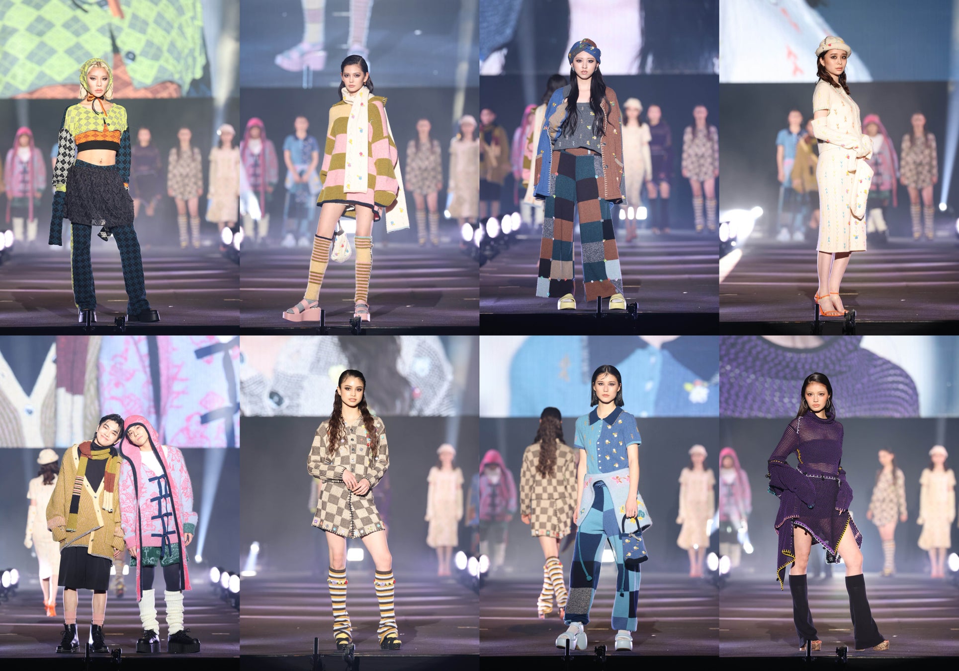 ラストは、ブランドディレクターのChiEmiが、クリエイティブディレクター KotokaIzumi(本職はイラストレーター/フォトグラファー)、CEO 中井(元よしもと芸人)とともに立ち上げたブランドで、TGC初登場となったKnuth Marf(クヌースマーフ)。なこなこカップル、よしあき&ミチらが、アパレル業界とは縁のないところからスタートしている3名が立ち上げたからこその、常識にとらわれない一癖あるジェンダーレスなコーディネートで登場しました。