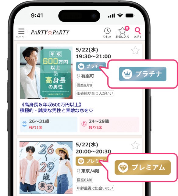 【PARTY☆PARTY】多くの異性から好印象をもたれた方が参加できる“プレミアムパーティー”を7月27日(土)より全国で開始!