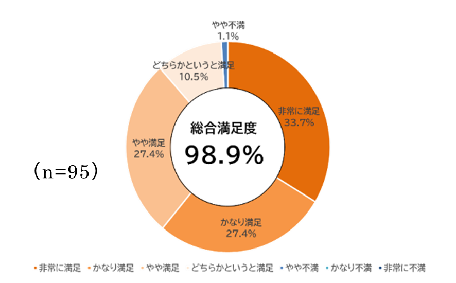 Q.あなたは、ヘアドライヤー「エレガンジェット」をお使いになり、総合的にどの程度満足しましたか?(単数回答/n=95)