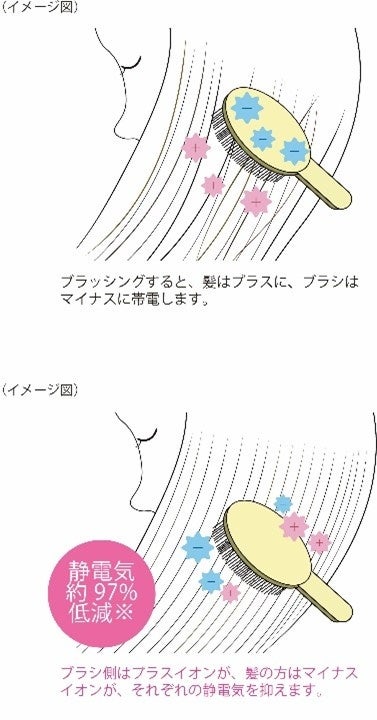 ※3 ●試験方法:ブラッシングにより静電気を発生させた毛束(人毛)に対 し、『BeauStage ELEGANJET』を使用する前後での静電気量の変化を測定。なお測定は3回実施。■試験結果:ブラッシング後の毛束の初期電圧が平均9.3kVだったのに対し、ドライヤー後の帯電圧は平均0.2kVと約97%低減されたことを確認。◆試験機関:新潟県工業技術総合研究所調べ