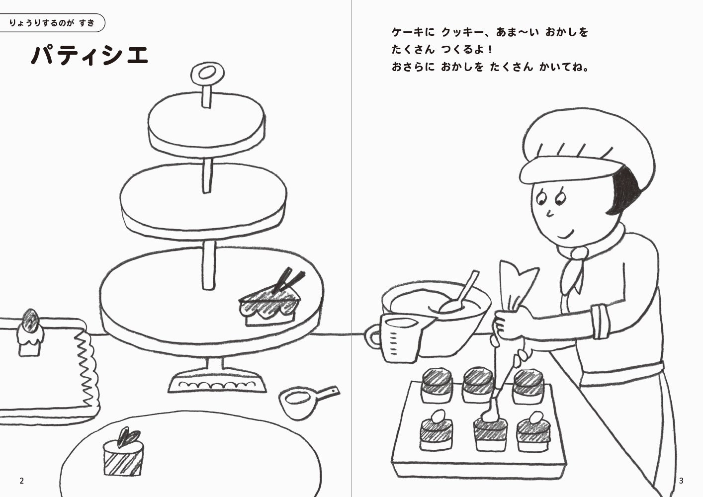 本書は、簡単なイラストや色を描き加えるだけで1枚の絵が完成するらくがき絵本です。パティシエやスポーツ選手など子供に人気の職業から、手品師や花火職人など珍しい職業まで、約90ものおしごとを掲載。就学前の子供たちが自由にらくがきしながら、「このおしごと、やってみたい!」と夢や興味をもつきっかけとなる1冊です。