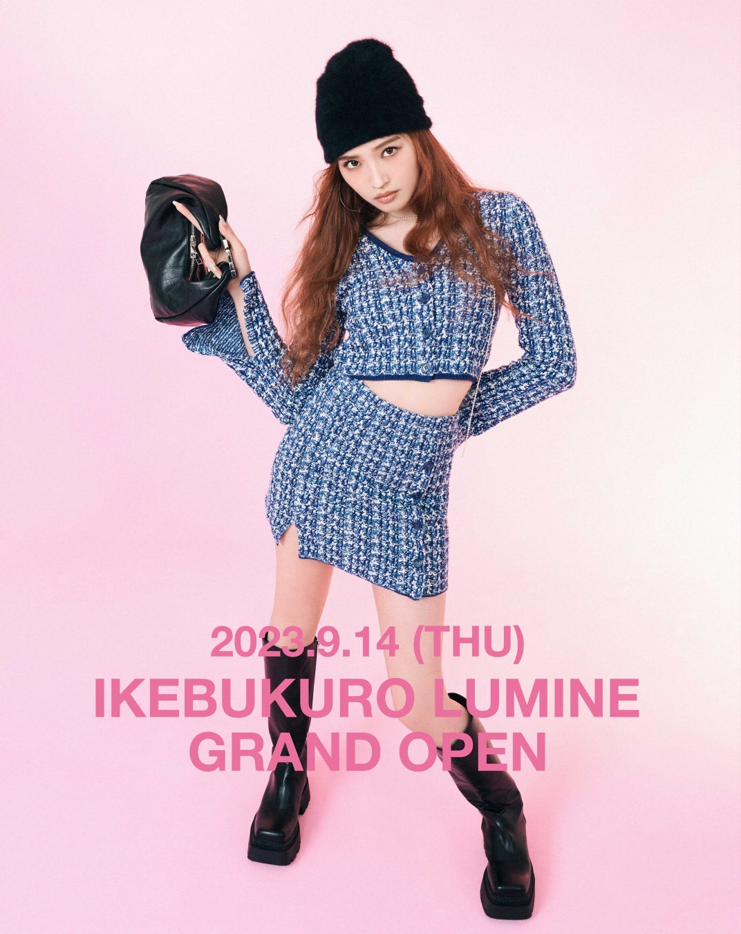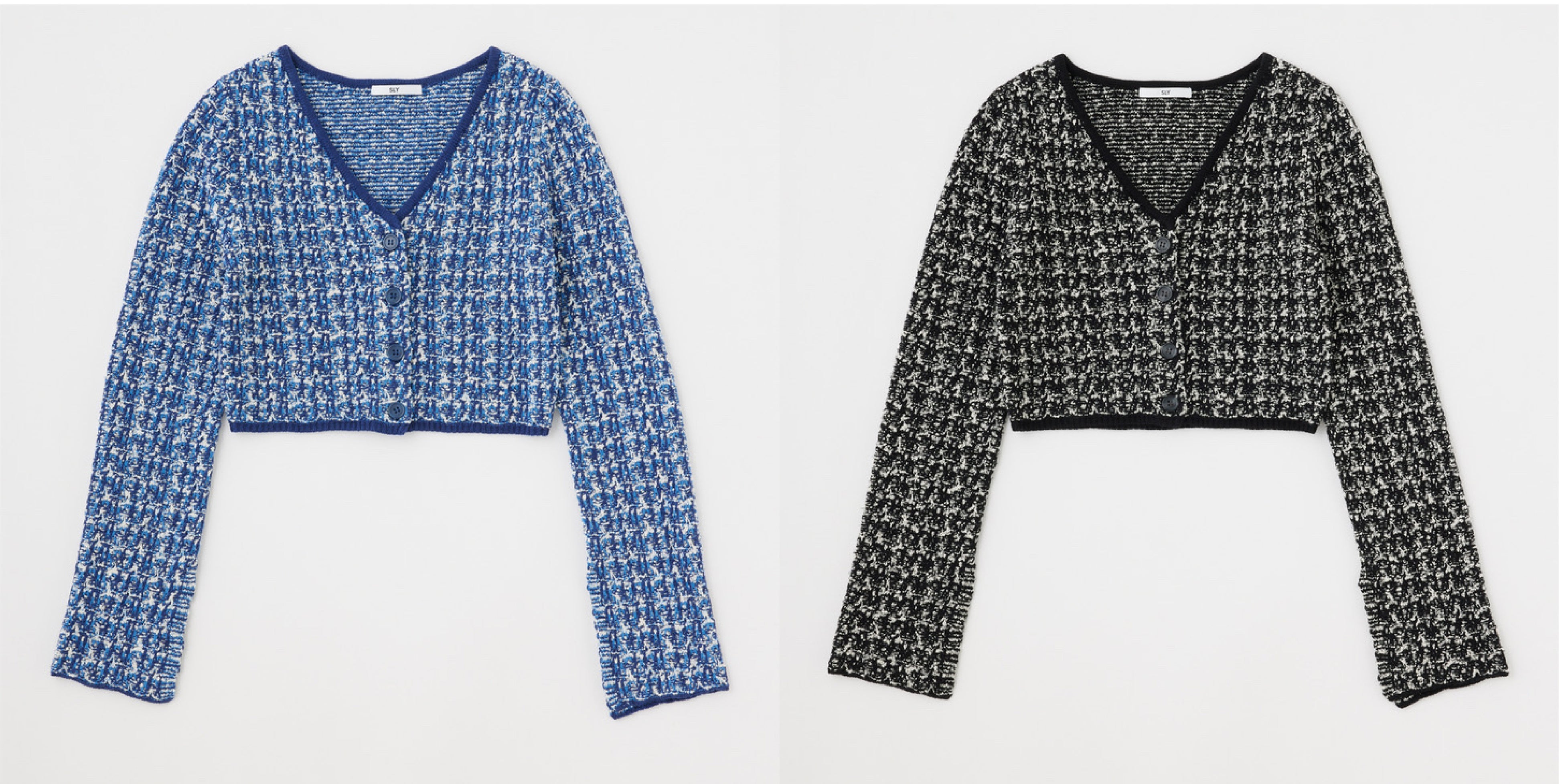 グランドオープンを記念した池袋ルミネ店限定商品として、ツイードのような編地が目を引く上品なニットカーディガン・ニットショートスカートや、ボックスロゴが施されたスウェット、オリジナル花柄をプリントしたシフォンブラウスの4型を販売いたします。