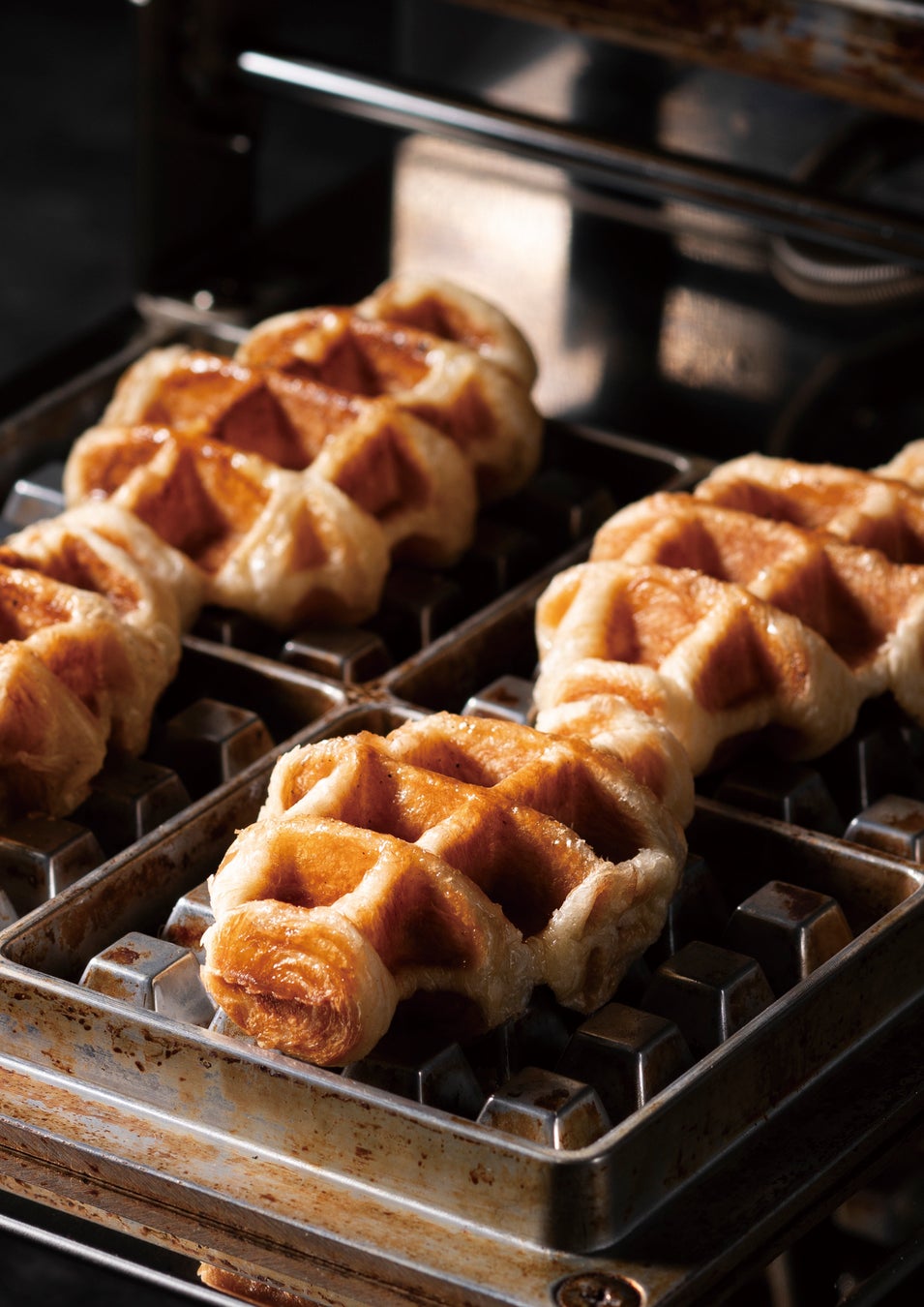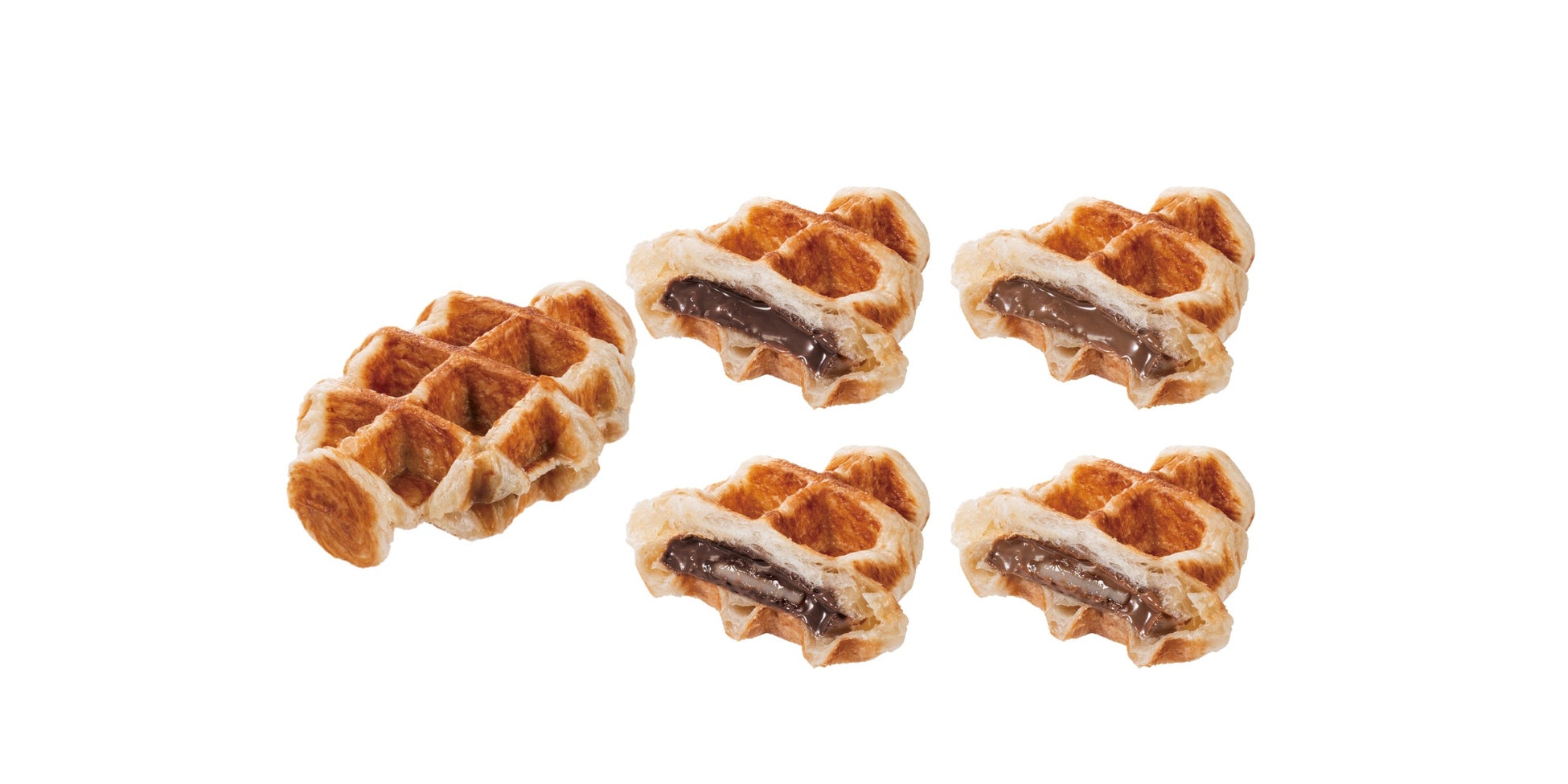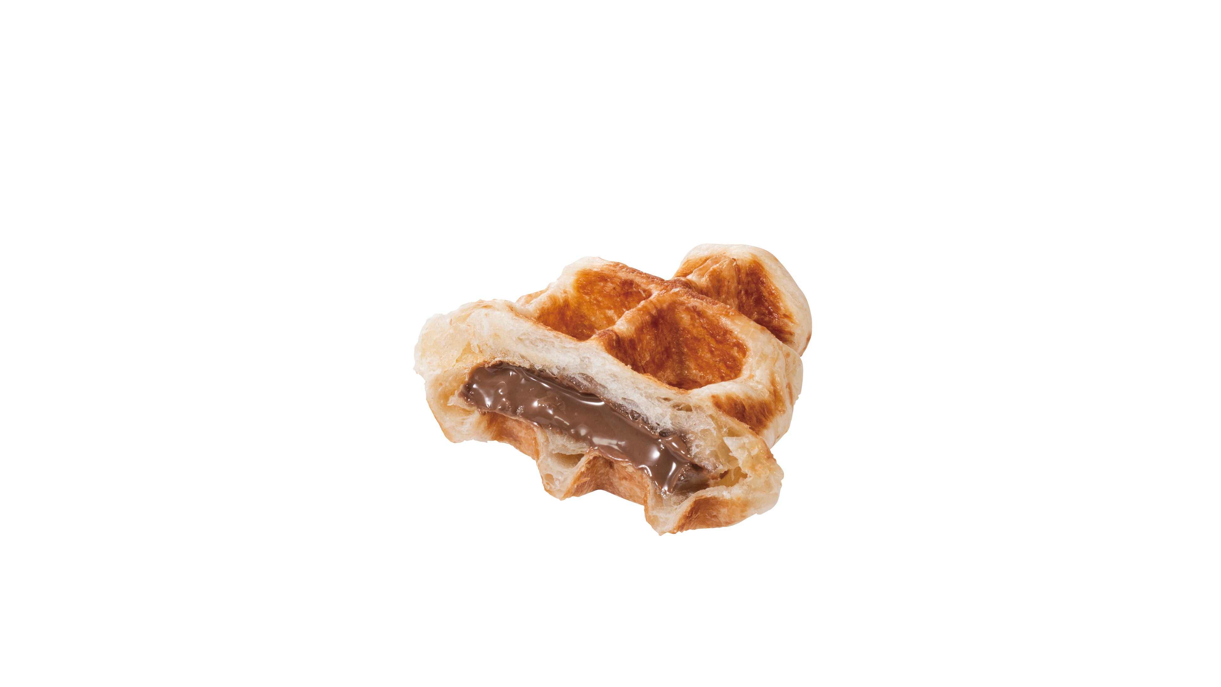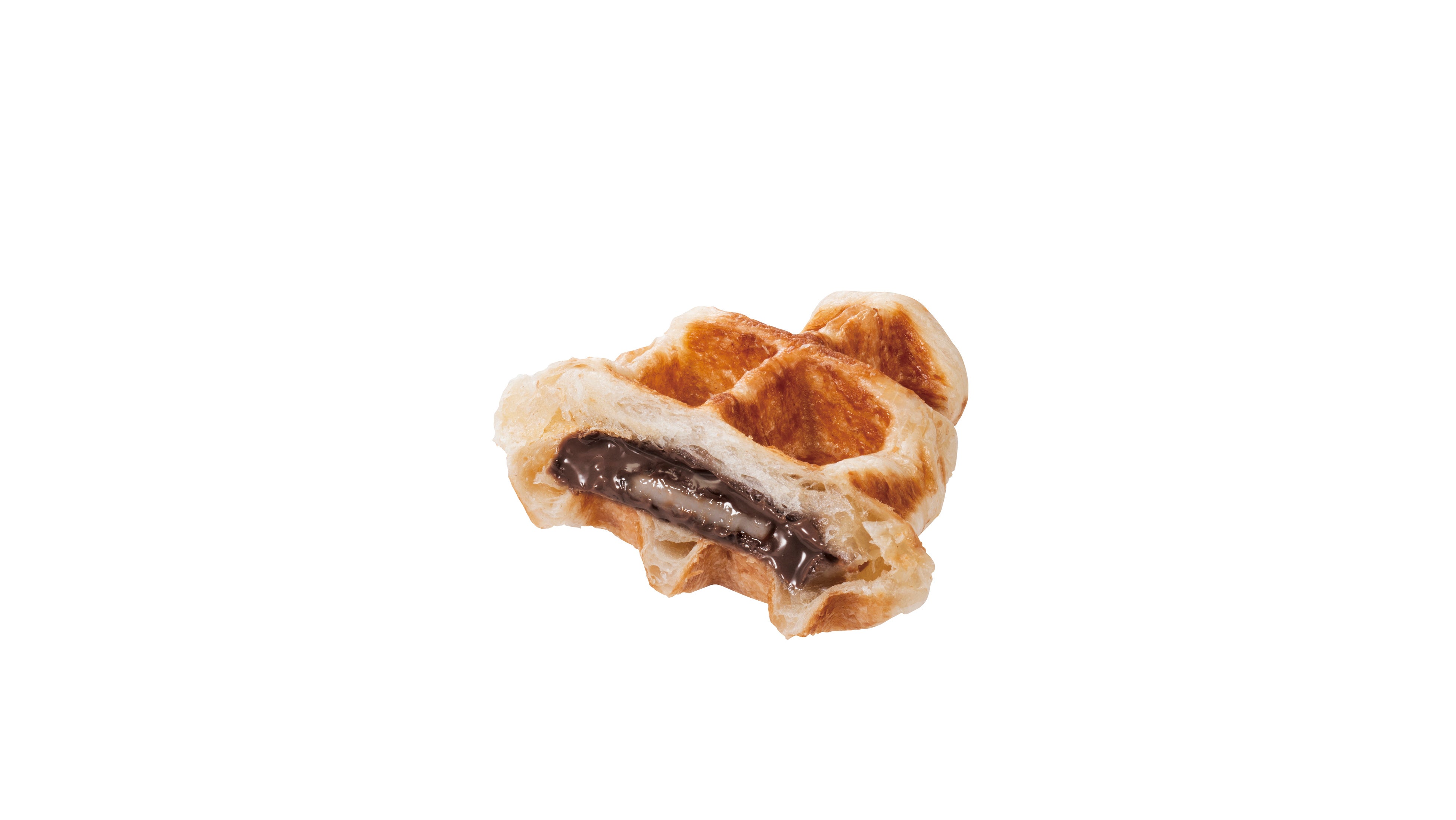 店頭でベルギー産チョコレートが入ったクロワッサンをワッフルメーカーで焼き、出来立てをご提供します。外はサクッと香ばしく、ひと口食べた瞬間に、チョコレートと柔らかな生地のハーモニーを楽しめます。ダークチョコレートやミルクチョコレートを入れた「チョコクロッフル」2種類と、もちもちした食感を加えた「もちっとチョコクロッフル」2種類の、合計4種類をご用意しました。
