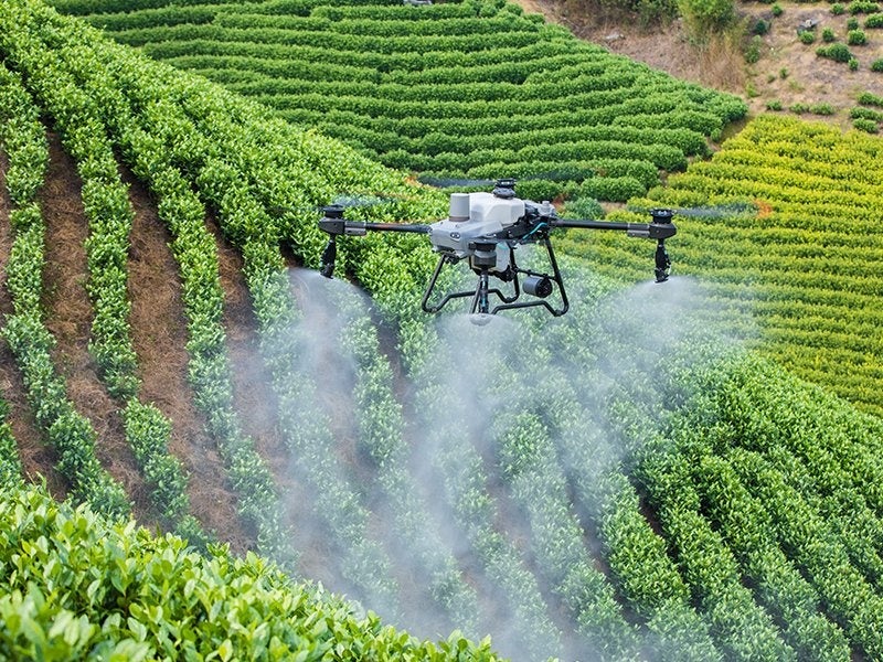 最大7.5メートルの散布幅で効率的に散布作業をおこなうことができ、大容量バッテリーを採用することにより、1回の飛行で約2ヘクタールの散布面積を実現します。高解像度のFPVジンバルカメラを搭載し、圃場の航空測量から農薬等の散布まで、農業機単体で一貫して作業することが可能です。