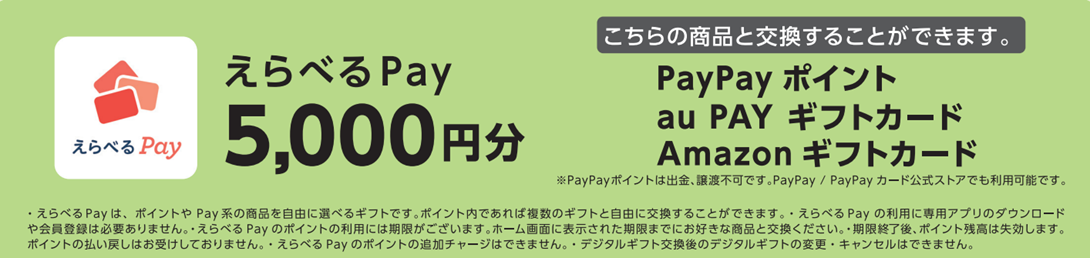 ・えらべるPayは、ポイントやPay系の商品を自由に選べるギフトです。ポイント内であれば複数のギフトと自由に交換することができます。