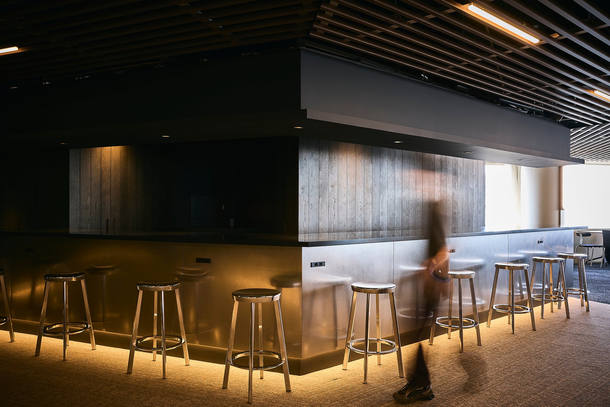 への字型に設計されたバーカウンターが存在感を放つバーエリアは、オフィスでありながら非日常的な空間を演出。コミュニケーションスペースとしてはもちろん、ワークスペースとしても活用できます。