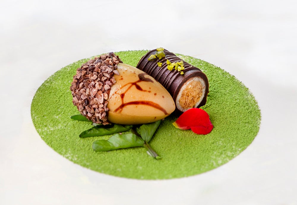 緑の苔庭にうさぎが跳ねるチーズデザート「クレームマスカルポーネシトロン」。リスのお目当て、木の実をかたどった「どんぐりボンボンショコラ」。小鳥たちの巣をイメージした信州りんごの「カダイフシュークリーム」。当店を象徴するイノシシの姿でしぼった“うり坊モンブラン”。枝にとまる小鳥たちのさえずりを聞きながら、森を舞台にはじまる豊かなスイーツ物語を心ゆくまでお楽しみください。