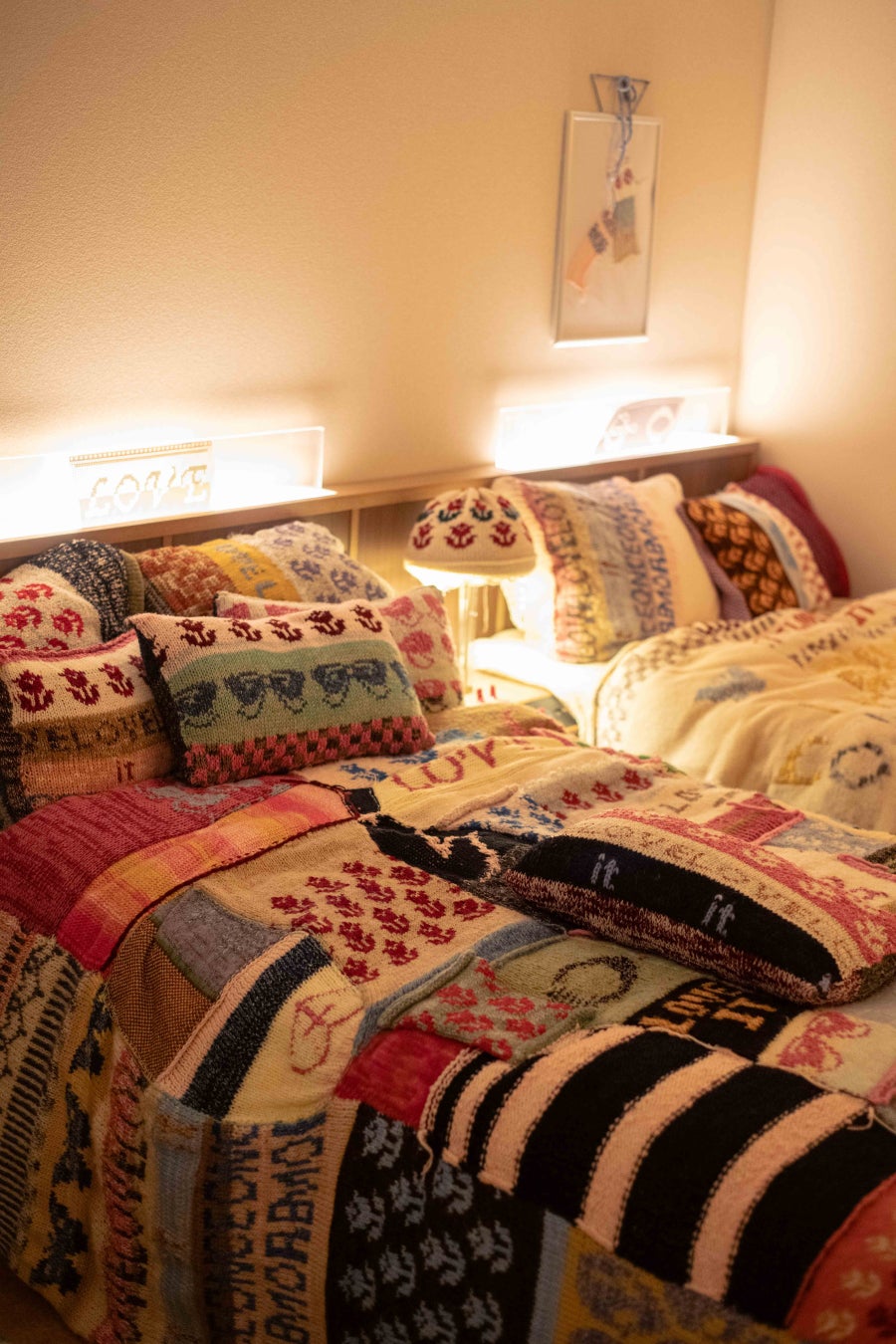 今回は、アップサイクルのハンドメイドニットブランド「ラヴィットワンスモア」を主宰するMaro Kuratani氏と昨年のノーガホテル秋葉原東京とのコラボレーションに引き続く企画。工場で廃棄されるはずだった糸や古着を再利用し、新たな価値を宿したニット作品を制作・販売する同ブランドの世界観をホテル内に展開します。訪れる人々が、糸を求めてホテル内を巡る“巡礼”のような体験を通じて、捨てられるはずだった素材に新たな命が吹き込まれたアートと出会います。ホテルならではの空間と作品が響き合う、静かで力強いアップサイクルの旅をご体験ください。