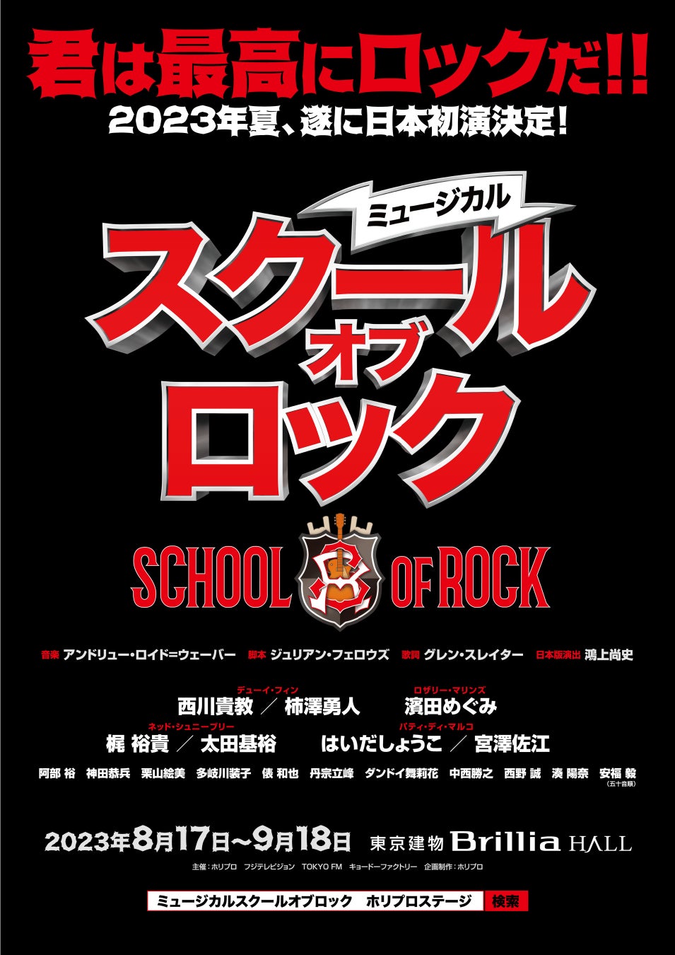 売れないロッカーが名門進学校の臨時教師になりすまし、生徒たちにバンドを組ませるコメディ映画として2003年に同名映画が公開され、2015年にはアンドリュー・ロイド=ウェバーのプロデュース・音楽によってブロードウェイでミュージカル化。新型コロナウイルス感染拡大によって全公演中止となった2020年から3年の時を経てついに日本初上演が決定。日本版は鴻上尚史が演出を手がけ、ロックを愛する破天荒な熱血バンドマンのデューイ・フィン役を西川貴教と柿澤勇人がWキャストで演じる。デューイが教師となる名門校の校長ロザリー・マリンズ役に濱田めぐみ。デューイの親友ネッド・シュニーブリー役に梶裕貴と太田基裕(Wキャスト)、ネッドの恋人パティ・ディ・マルコ役にはいだしょうこと宮澤佐江(Wキャスト)という豪華キャスト陣が集結。