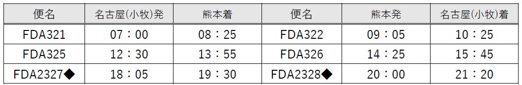 FDA 『名古屋(小牧)=熊本』線の期間増便について