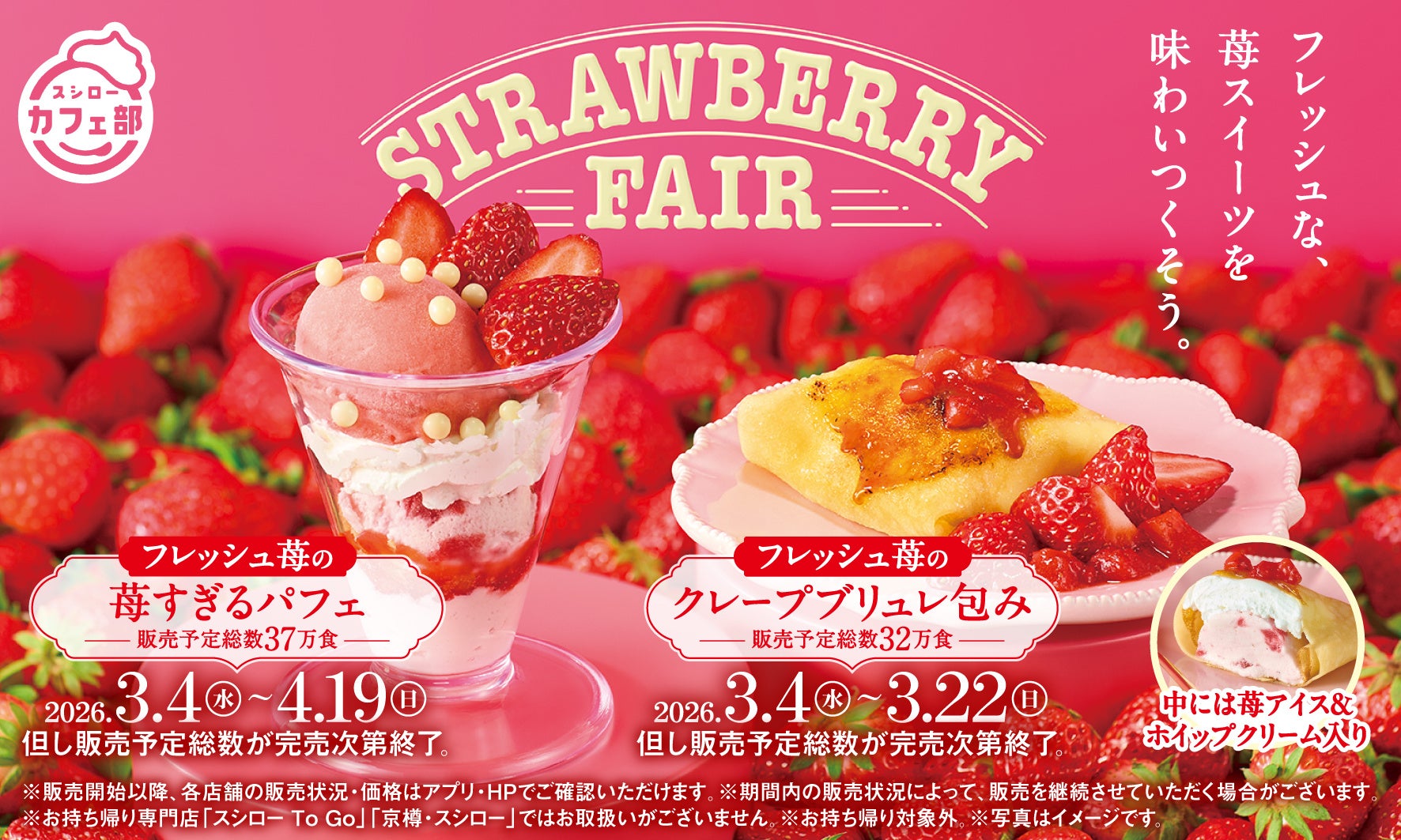“スシローカフェ部”から甘酸っぱい苺を楽しめるスイーツをお届け!春にぴったりのフレッシュ苺を味わいつくす『STRAWBERRY FAIR』開催!