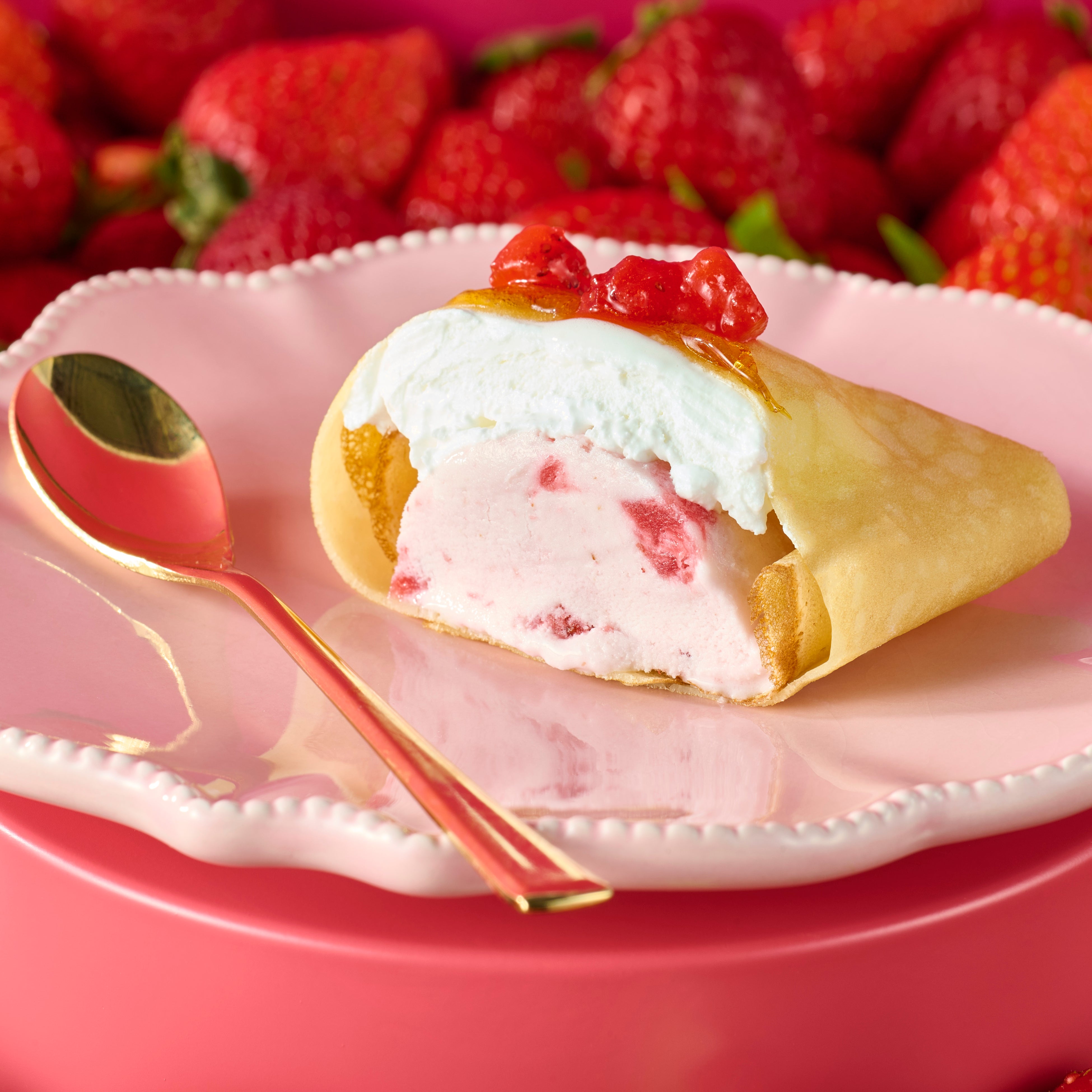クレープの中には苺アイス&ホイップクリーム入り