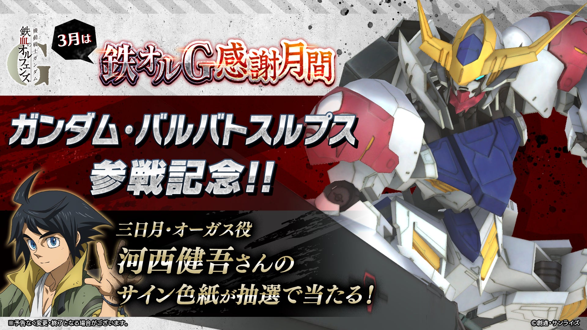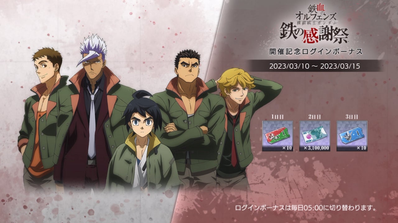 - 「機動戦⼠ガンダム 鉄⾎のオルフェンズ 鉄の感謝祭」開催記念ログインボーナス実施中