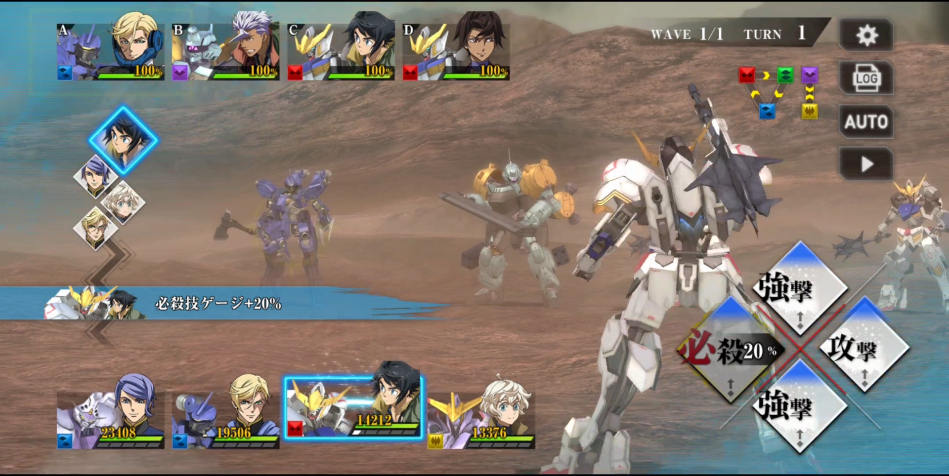 ゲーム内のMS戦は、ターン制のコマンドバトルとなっており、画面に表示されたコマンドを選択することで、ゲームが苦手な方も簡単に『鉄血のオルフェンズ』らしいMS同士の戦いを体験することができます。