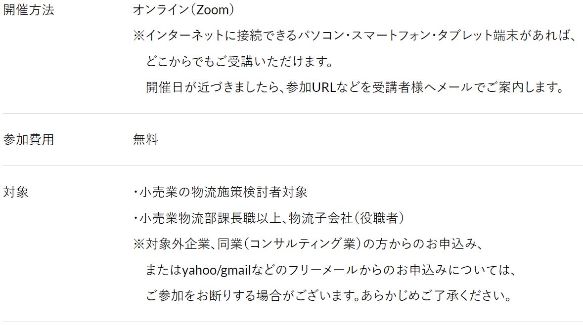 本セミナーでは上記にスポットを当てて、今後の小売業物流の在り方を提言します。