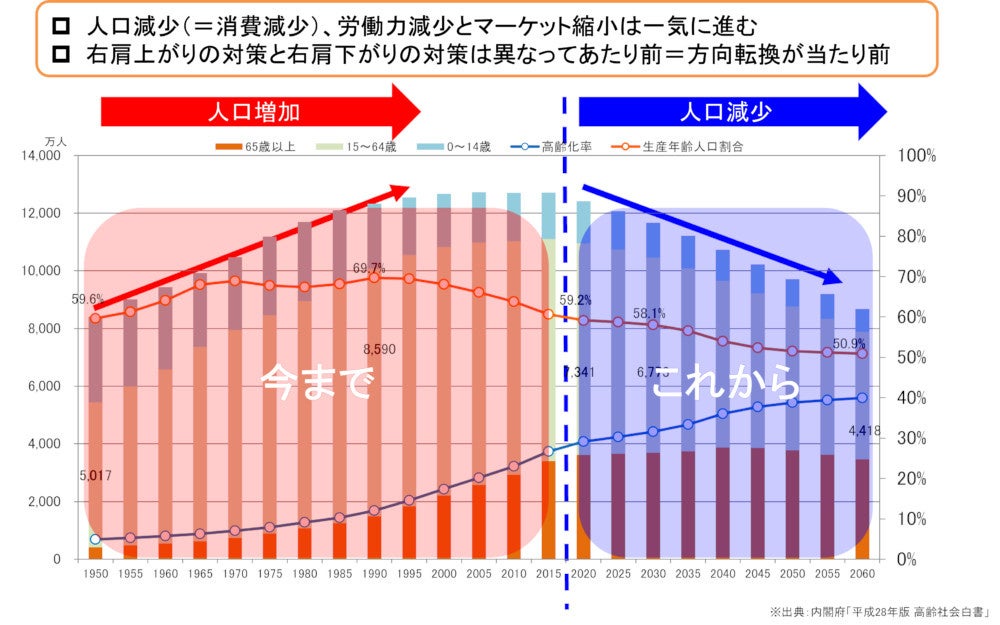今後の国内の人口減少により、市場および物流業界に大きなインパクトを与えます。