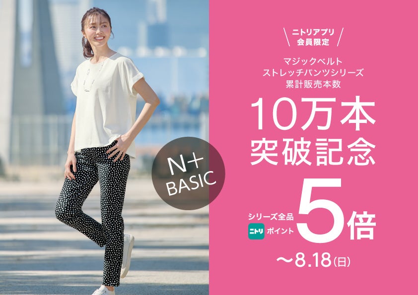 "ニトリアプリ会員限定 マジックベルトストレッチパンツ全シリーズ5倍キャンペーン”を開催いたします。