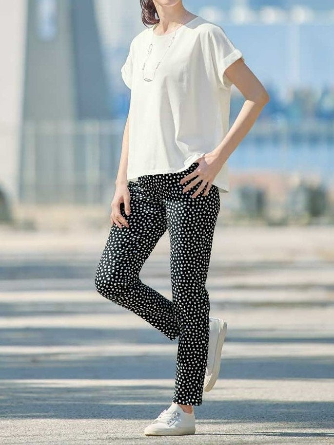 暑い夏におすすめなのは、接触冷感機能のついたマジックベルトストレッチパンツです。色も柄も、スタイルも楽しめるマジックベルトストレッチパンツは、暑い夏も大人女性に寄り添い続けます。
