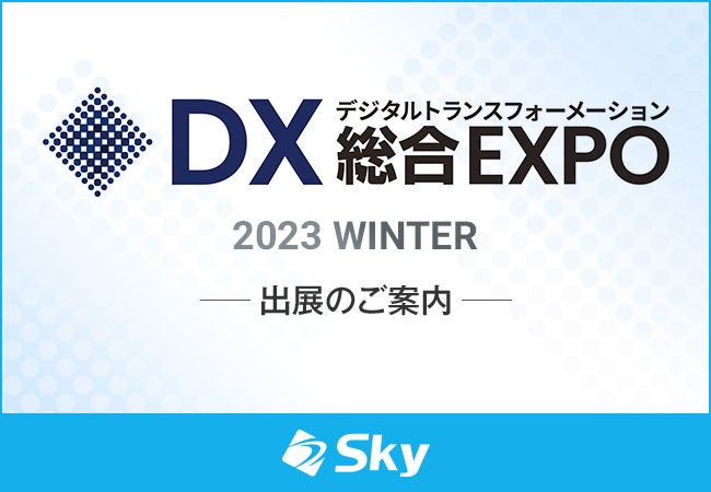 Sky株式会社は、2023年12月13日(水)~15日(金)に大阪南港 ATCホールで開催されるDX実現のための総合展「DX 総合EXPO 2023 冬 大阪」に出展いたします。