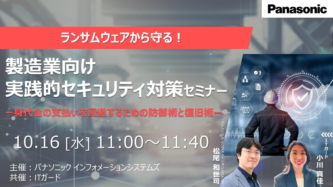 【ウェビナー】10/16(水)ランサムウェアから守る!製造業向け実践的セキュリティ対策セミナー