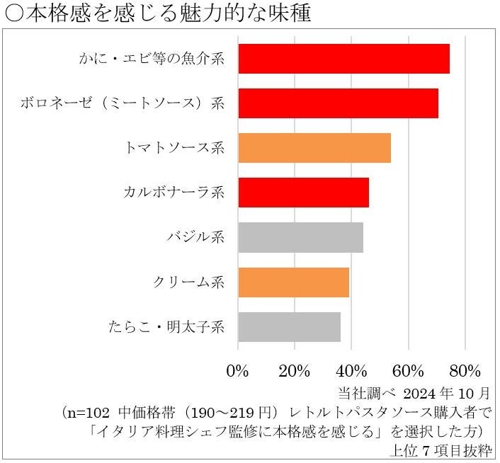 また、魚介系やカルボナーラなど、家庭での調理が難しいメニューや、人気のミートソースの魅力度は依然高いことから、市場拡大の可能性があります。