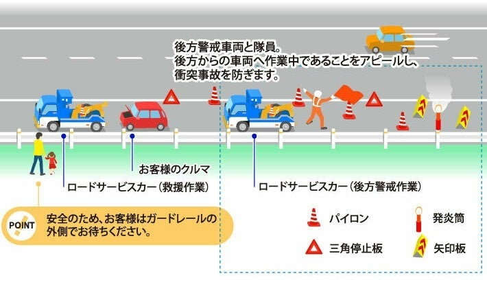 JAF(一般社団法人日本自動車連盟 会長 坂口正芳)は11月1日(火)、高速道路上でトラブルのあったお客さまからの救援要請に際し、後続車からの追突を防ぐため「後方警戒装置」の運用を開始いたします。