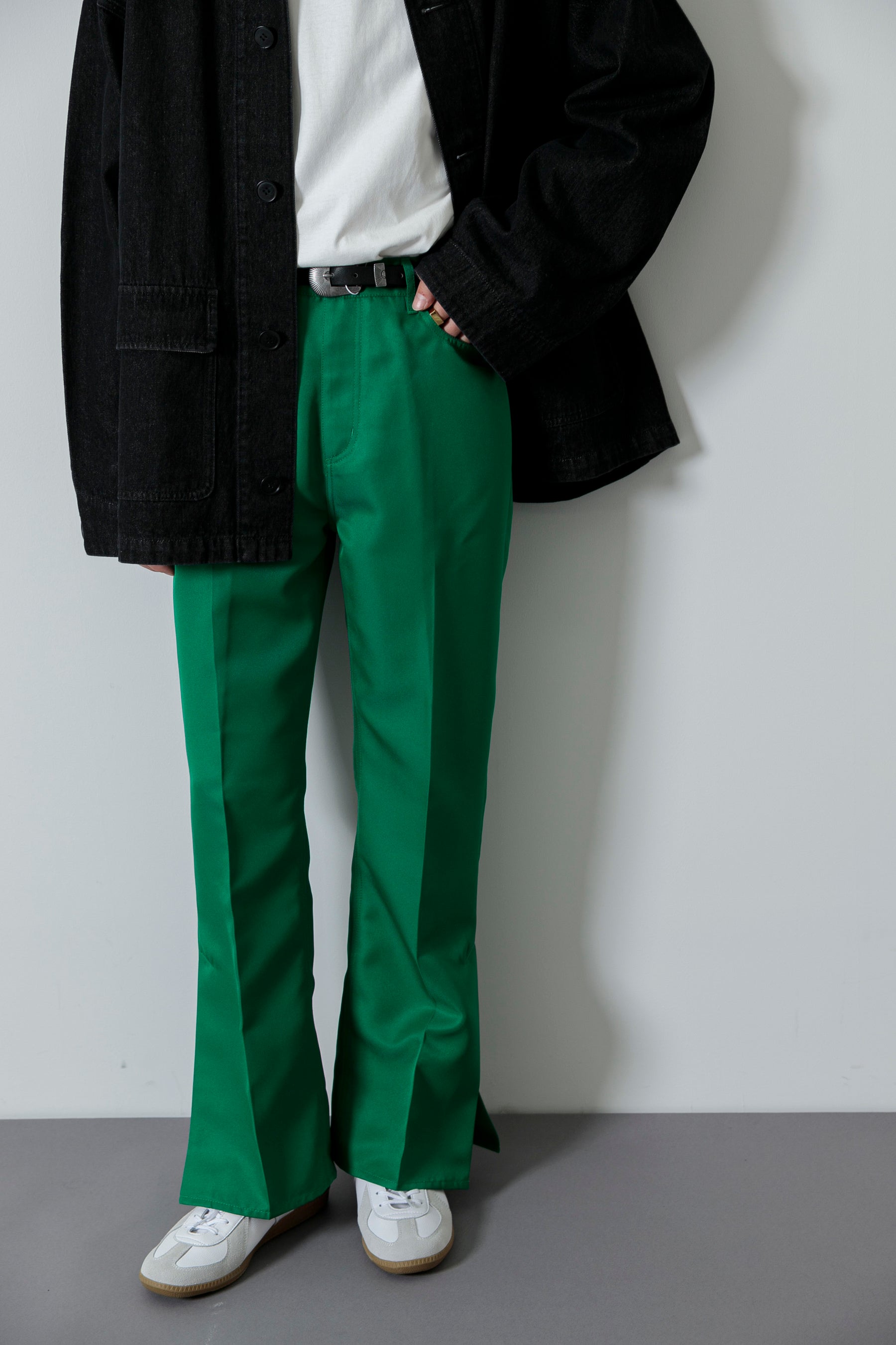 180cm以上の高身長の方にもおすすめのフレアスリットパンツが完成しました。Mサイズは通常の丈なので、幅広い身長の方に穿いていただけます。 夏にも穿ける生地感なのでロングシーズン楽しんでもらいたいです。