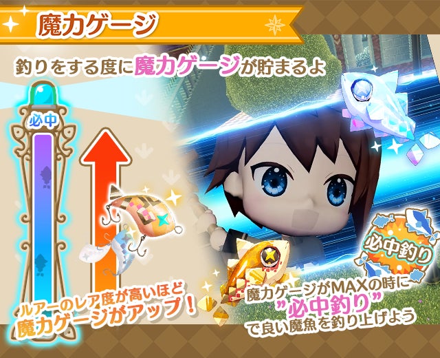 「魔力ゲージ」が溜まったら、レアな魔魚が釣れる「必中釣り」のチャンス!
