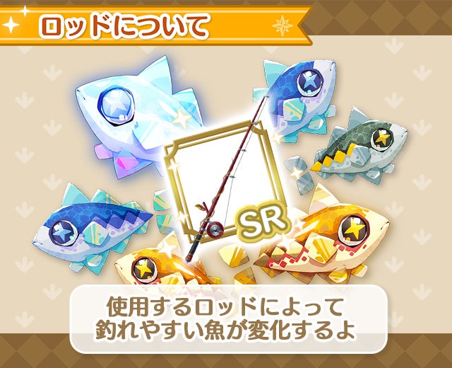 4月7日(月)18時解禁!プレイヤーが一堂に集まる広場の水辺でワイワイ楽しめる、簡単操作の【魔魚釣り】がスタートします。ロッドやルアーを使って釣りを極めてみてください。釣りでもらえる「マテリアル」は学園でアイテムに交換できます。