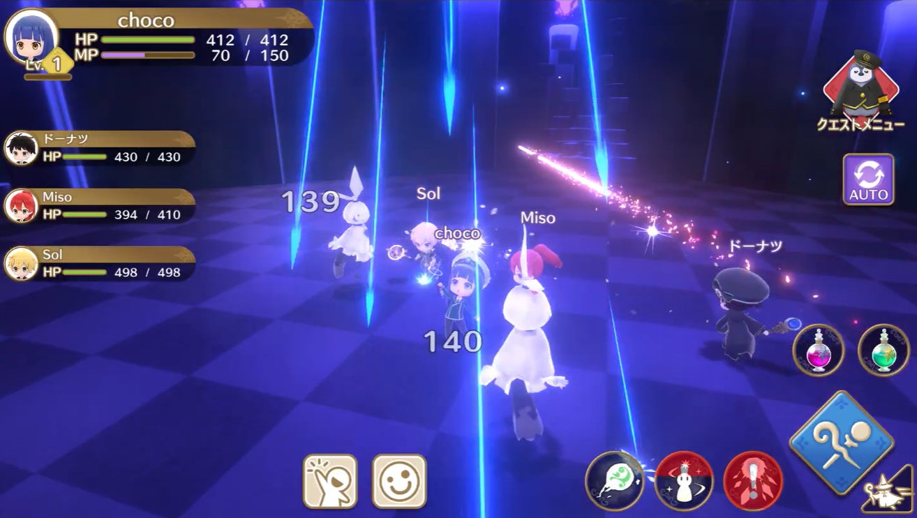 魔法世界ではその他にもキャラクター着せ替え、フレンドと一緒に楽しめる簡単バトル等、楽しみ方は自由自在です。クエストに挑戦し、経験値やアイテム、素材等の報酬を獲得しながら、一人前の魔法使いを目指しましょう。