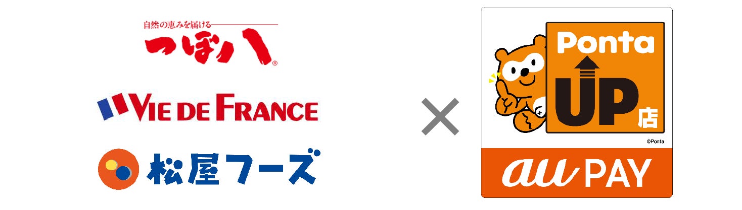 KDDI株式会社(本社:東京都千代田区、代表取締役社長 CEO:髙橋 誠、以下 KDDI)、auペイメント株式会社(本社:東京都港区、代表取締役社長:菊池 良則、以下 auペイメント)、株式会社ロイヤリティ マーケティング(本社:東京都渋谷区、代表取締役社長:長谷川 剛、以下「LM」)の3社は、株式会社つぼ八(以下 つぼ八)の6ブランド、株式会社ヴィ・ド・フランス(以下 ヴィ・ド・フランス)の4ブランド、株式会社松屋フーズ(以下 松屋フーズ)の3ブランド(合計13ブランド)が、2024年12月1日から「au PAY Pontaアップ店」に追加となることをお知らせします。