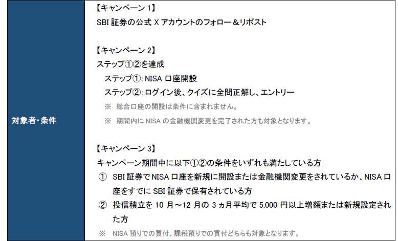 <景品総額1億円!?SBI証券NISA応援キャンペーンの概要>
