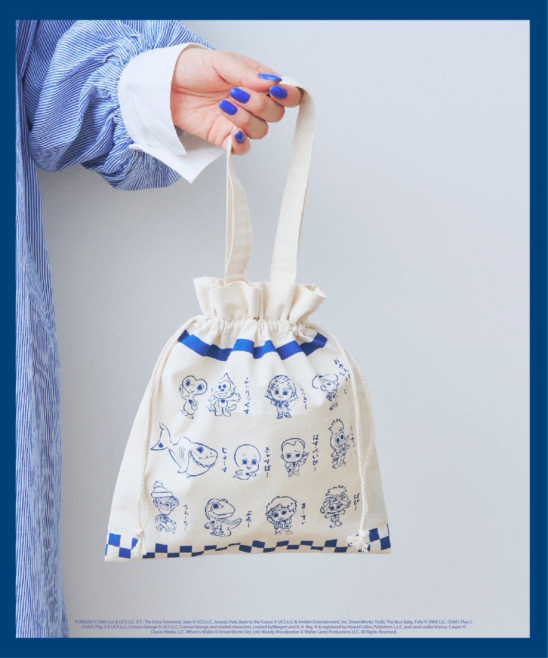 ポケユニの人気12キャラクターがプリントされた巾着型のバック。ちょっとそこまでのお買い物や、トラベルグッズとしてもおすすめなサイズです。