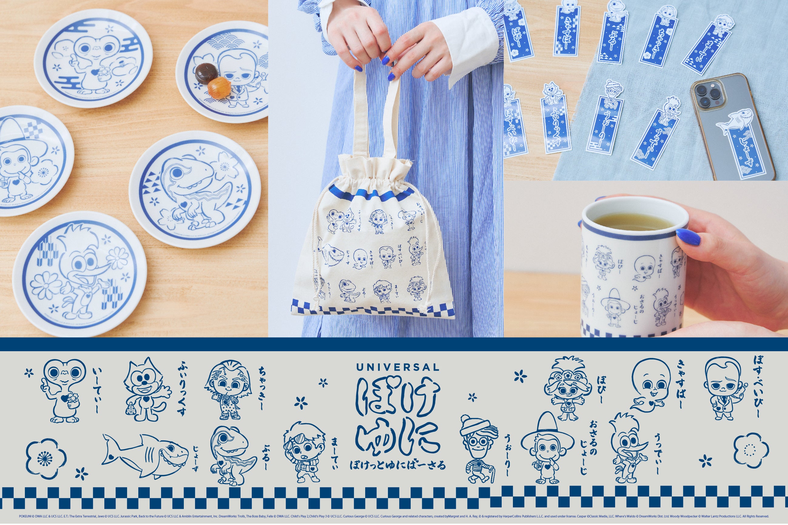 株式会社パル(本社:⼤阪市中央区道修町3-6-1 代表取締役 松尾勇)が手掛けるNBCユニバーサル・エンターテイメントジャパン合同会社の新たなマルチ・キャラクターブランド「ポケユニ/ポケットユニバーサル」では、7月24日(月)より、日本らしい和を感じられる藍色一色でまとめられた夏らしいデザインの、手ぬぐいや湯呑、豆皿など日本らしいアイテムをはじめ、札をイメージしたデザインのステッカーや巾着型のトートバッグを展開します。現在ポケユニハラジュク、ポケユニアベノのストア限定で絶賛販売中の「おむすびケーキ」と合わせて、お土産としてもおすすめなコレクションです。