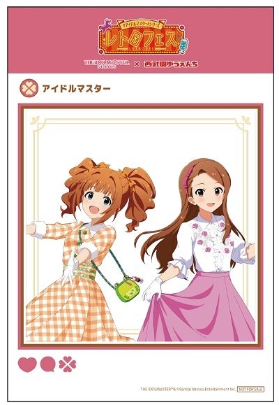 西武園ゆうえんちの入園とアトラクションが乗り放題のチケット「1日レヂャー切符」に、「『アイドルマスター』シリーズ レトロフェス」限定の特典がついた「『アイドルマスター』シリーズ レトロフェス限定 特典付き1日レヂャー切符」を販売。西武園ゆうえんち限定の昭和レトロなコーディネートをしたアイドルたちの描き下ろしイラストを使用したクリアポストカードとスタンプラリーキットがついています!
