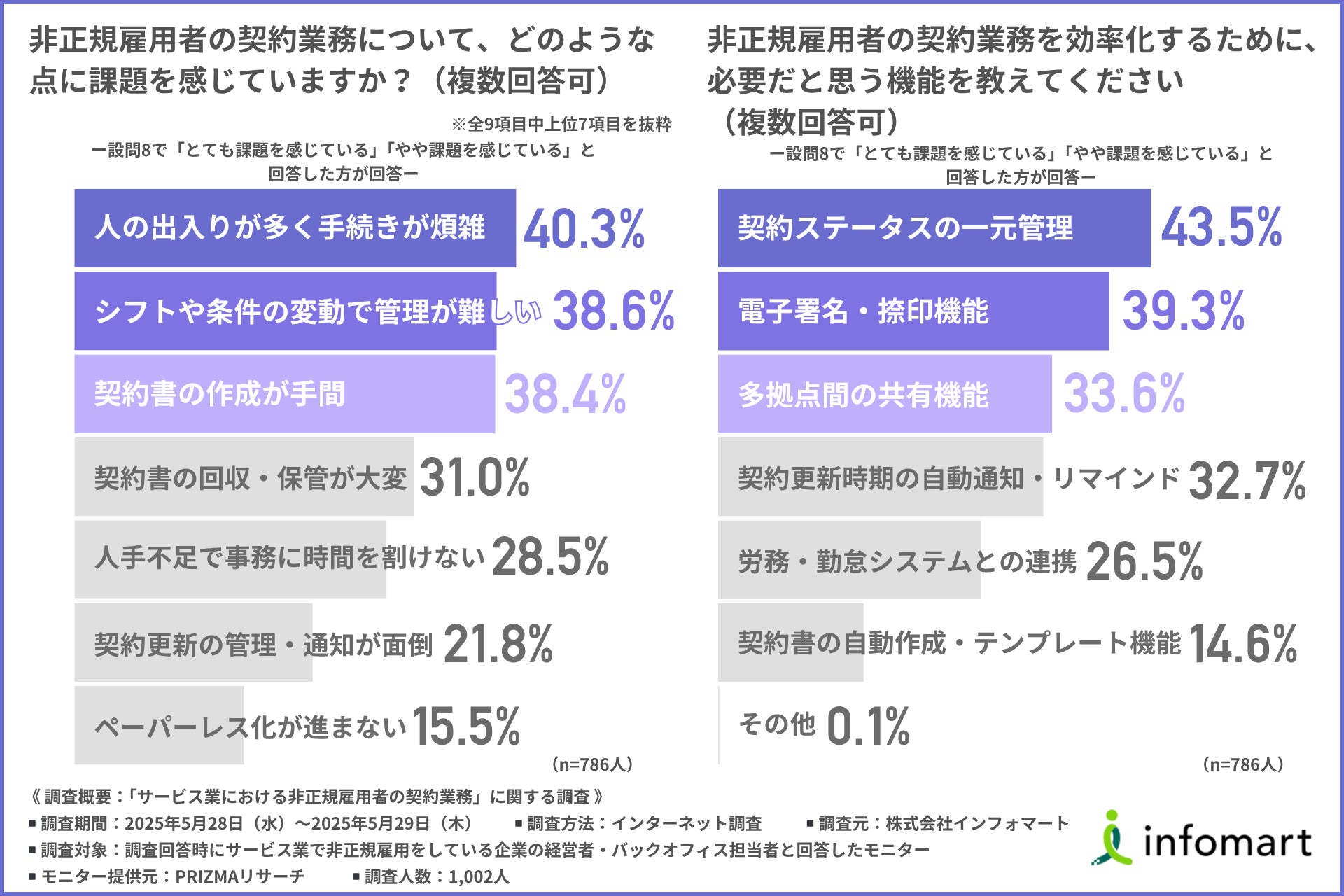 「契約ラッシュ、限界!!」約8割が『雇用契約業務』に“課題”を感じている【サービス業の非正規雇用者の契約業務に関する調査】