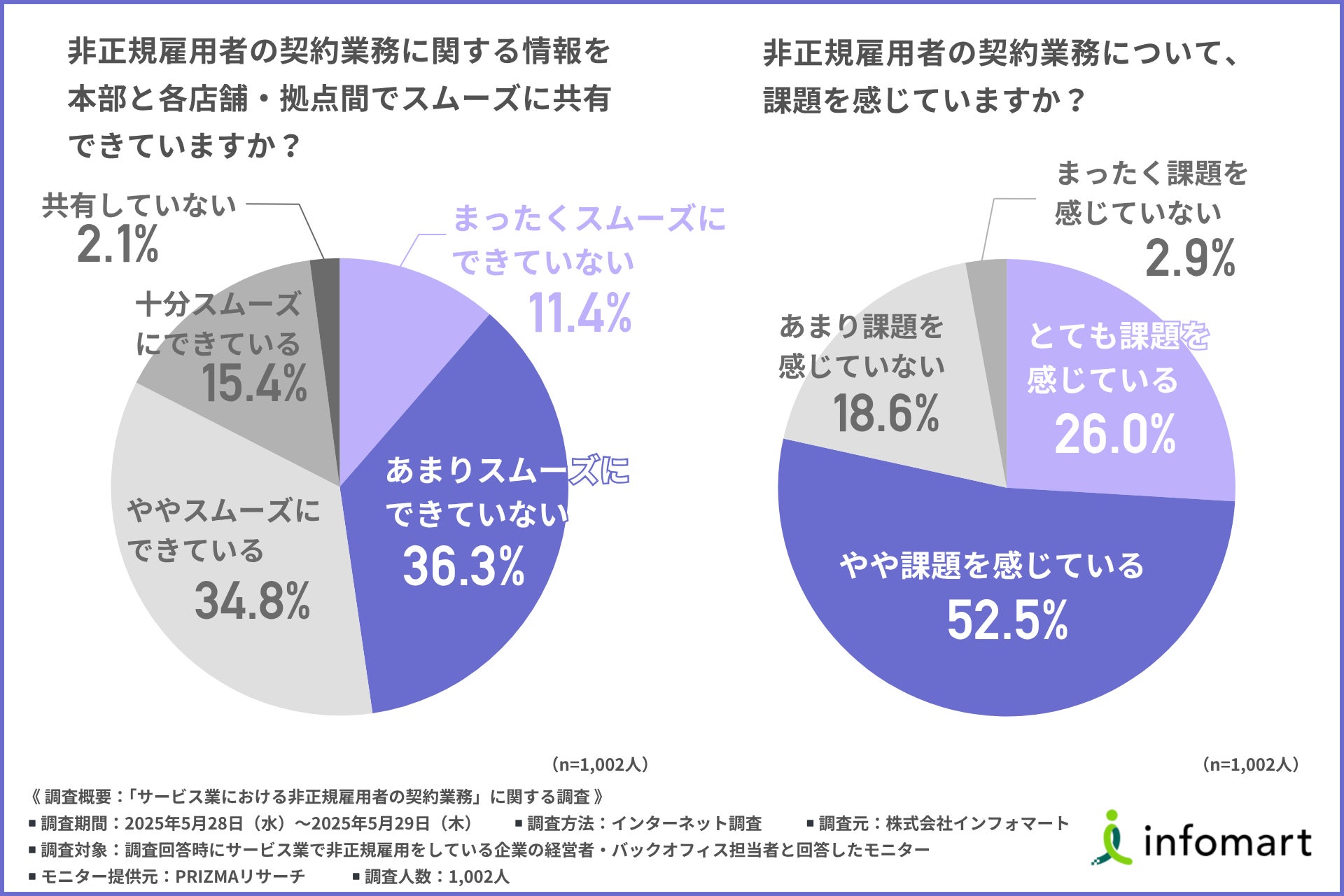デジタルの力であらゆる業務を効率化する株式会社インフォマート(本社:東京都港区 代表取締役社長:中島 健、以下「当社」)は、サービス業で非正規雇用をしている企業の経営者・バックオフィス担当者1,002名を対象に、「サービス業における非正規雇用者の契約業務」に関する調査を実施しましたので、その結果をお知らせします。