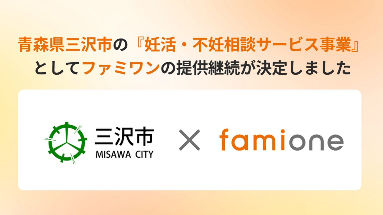 「子どもを願うすべての人によりそい 幸せな人生を歩める社会をつくる」をビジョンに掲げ、法人の従業員向け福利厚生や自治体の住民向け支援を行うヘルスケアサポートサービス「ファミワン」 https://famione.com/benefit/ などを展開する株式会社ファミワン(本社:東京都渋谷区、代表取締役:石川 勇介)は、青森県三沢市(市長:小檜山 吉紀、以下三沢市)からの委託を受け、「妊活・不妊相談サービス事業」において、令和8年度のサービスの提供継続が決定いたしました。